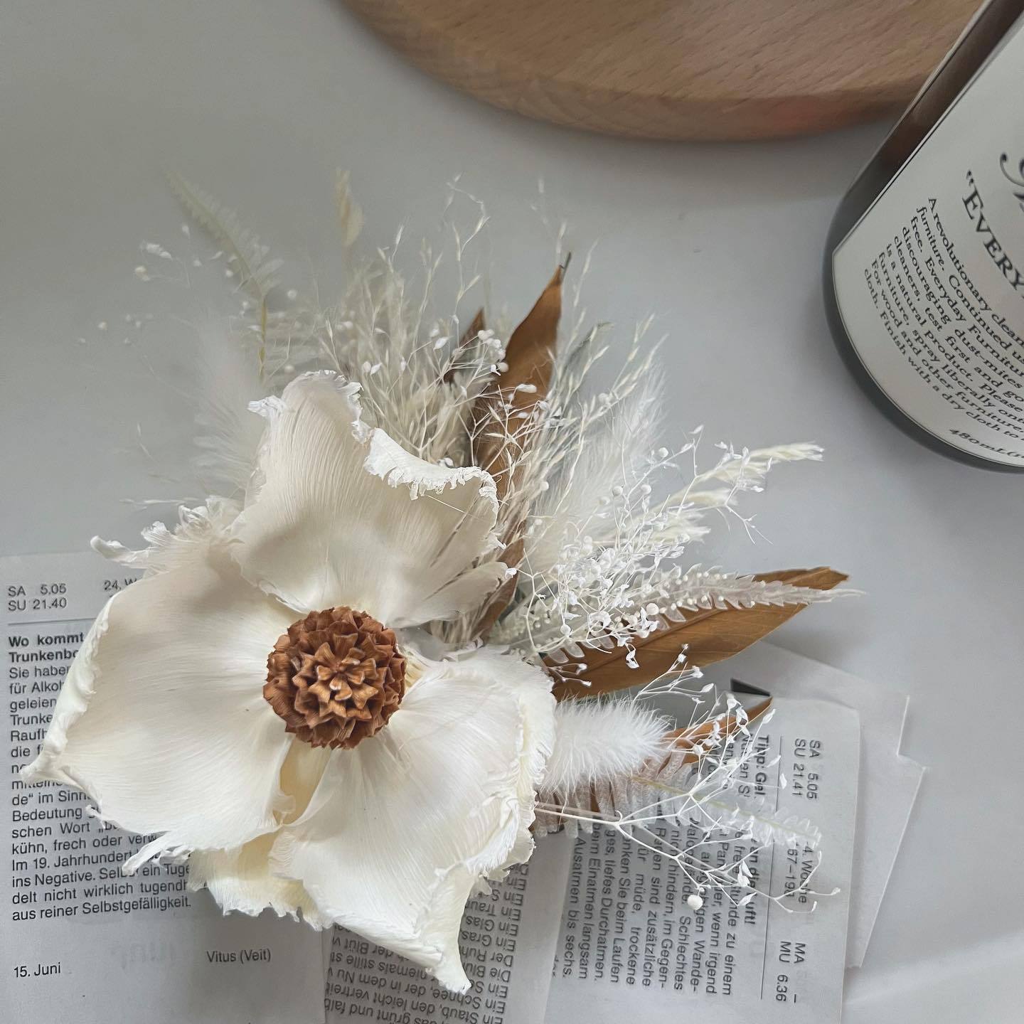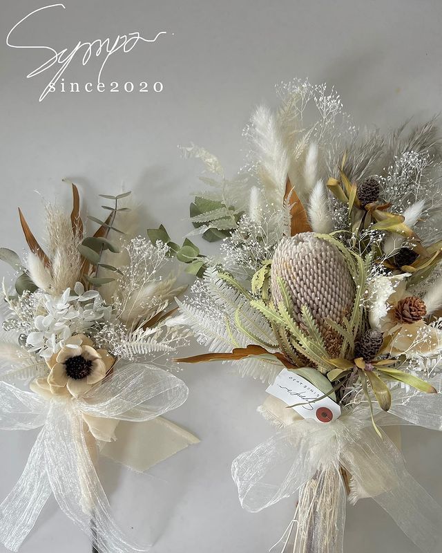 旬な花を取り揃え、スタイリッシュで個性的なドライフラワーのブーケやアレンジメントフラワーを制作しています。